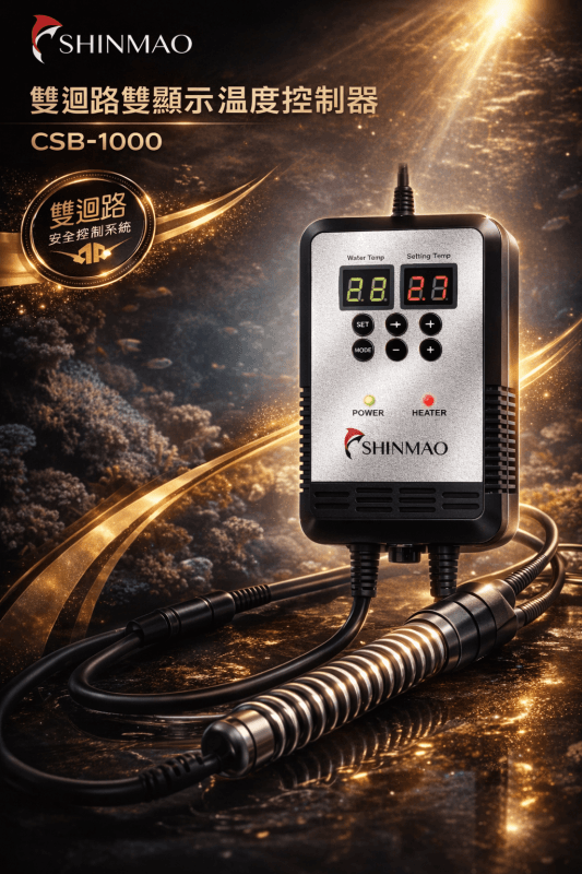 •獨特雙迴路設計,提供雙重保障。當設備異常或溫控系統失效時,備用迴路確保控溫器能自動切斷電源,有效預防過熱風險,全面保護您的水族生態系統。