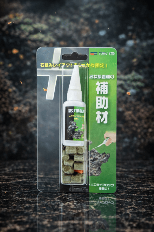 在為魚缸創建石材佈景時,這種液體黏合劑可以與輔助材料結合使用,以牢固地黏合表面不平坦和黏合面積較小的部分。